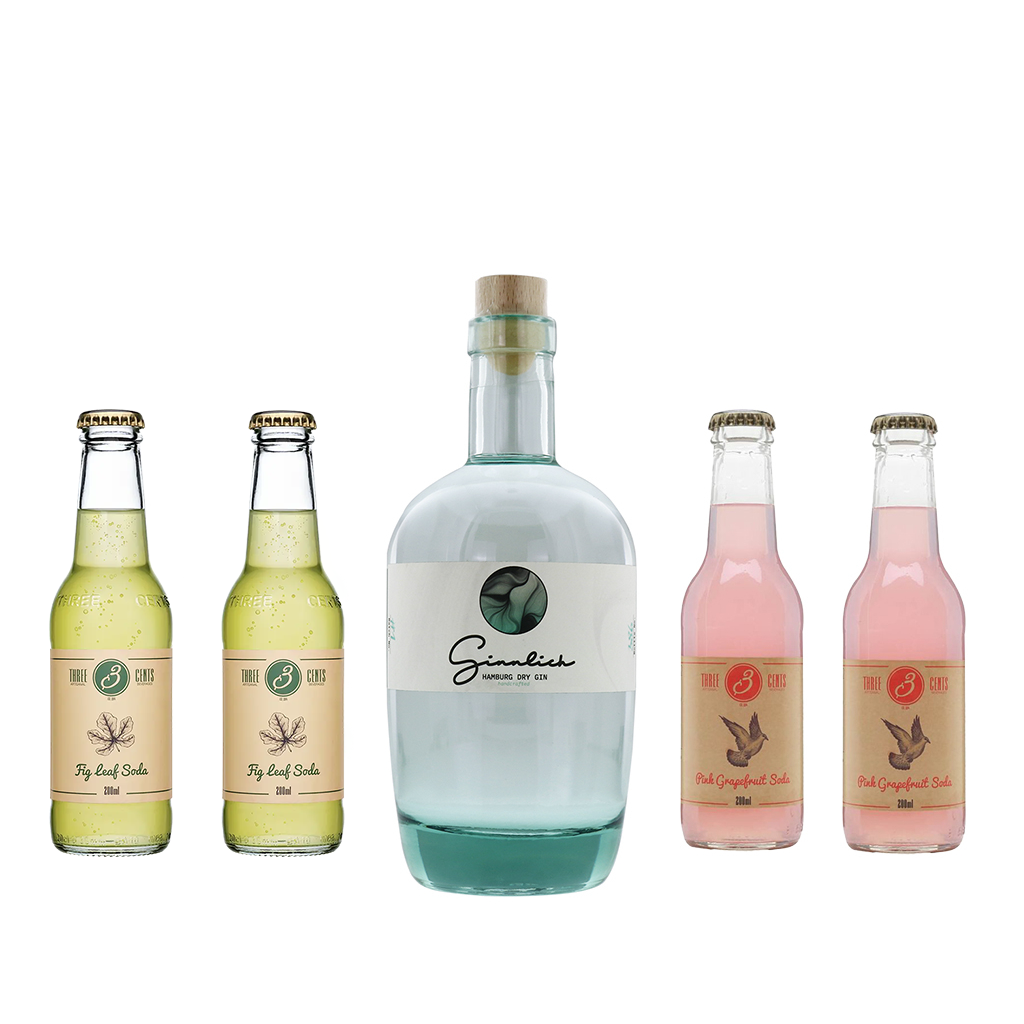 Dieses Bundle bringt frischen Wind ins Glas: Unser klassischer Dry Gin kombiniert sich mit der samtigen Fig Leaf Soda und der herben Pink Grapefruit Soda von Three Cents - überraschend, vielschichtig, anders.